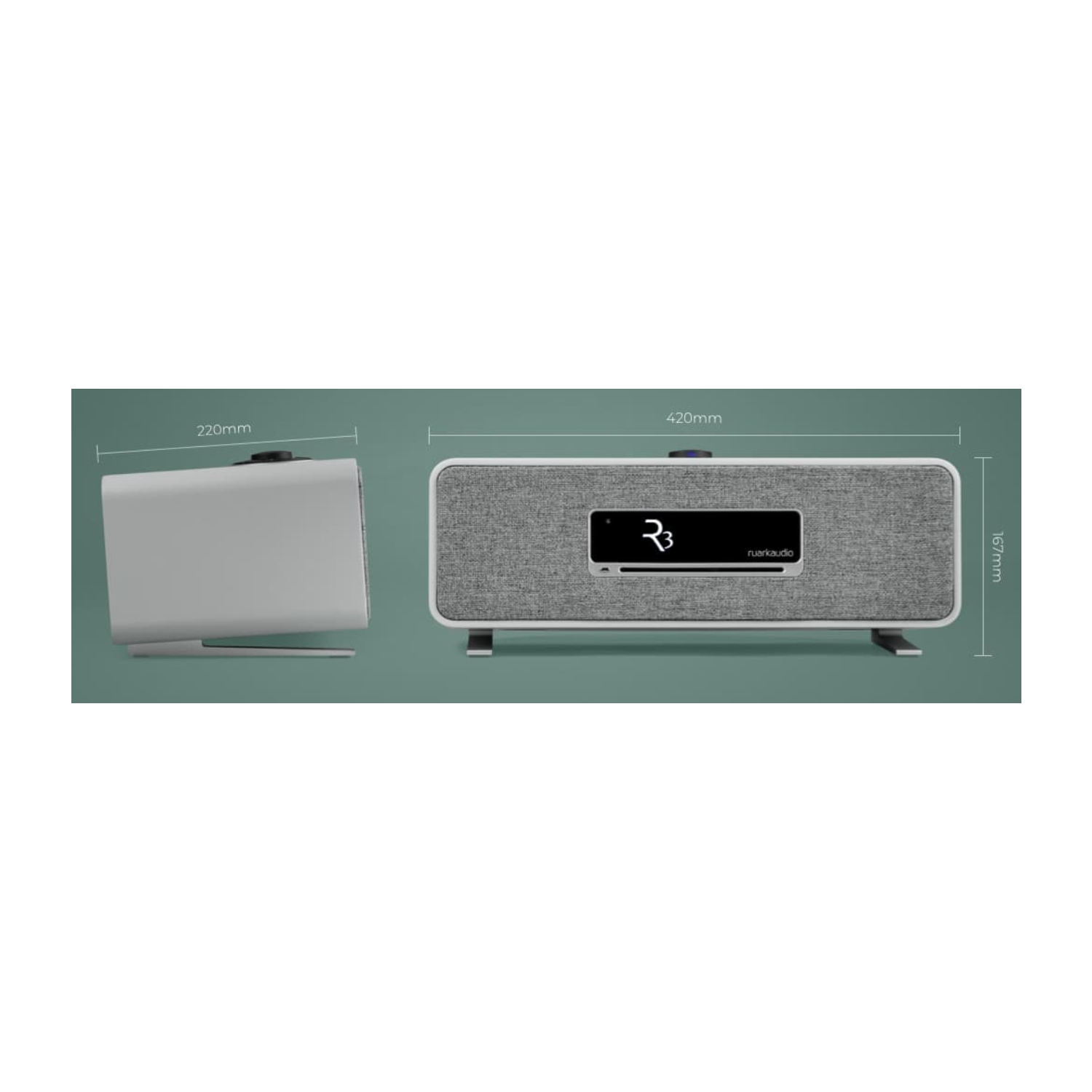 Ruark R3 Compact Music System – New for 2020 - Designed to Exceed ExpectationKey Features:Class leading audio with enhanced stereo soundMultiformat CD PlayerComprehensive Wi-Fi streaming with Spotify ConnectSupport for Tidal, Deezer and Amazon MusicAptX Bluetooth ReceiverSmartRadio Tuner with Internet Radio/DAB/DAB+/FMEveryone deserves good design in their lives and the smart, elegant R3 system helps people enjoy life that little bit more. It combines a dapper, upscale design with a versatile and playful form factor, topped off by a sublime sound that belies its compact stature. It is also hugely flexible, empowering users to do more than they thought possible with such a system.